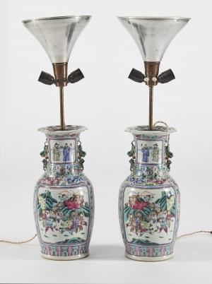Porcelaine émaillée polychrome à décor de scènes de bataille et...