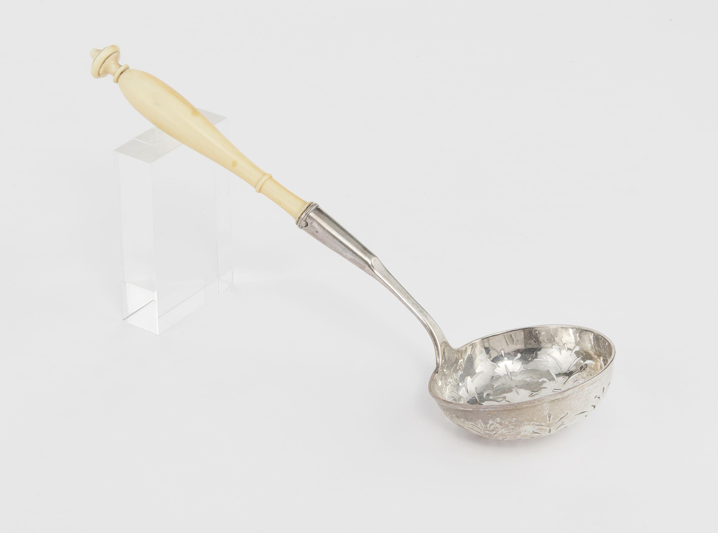 3634. Suite de 6 cuillères, 1 cuillère à saupoudrer et 1 pince