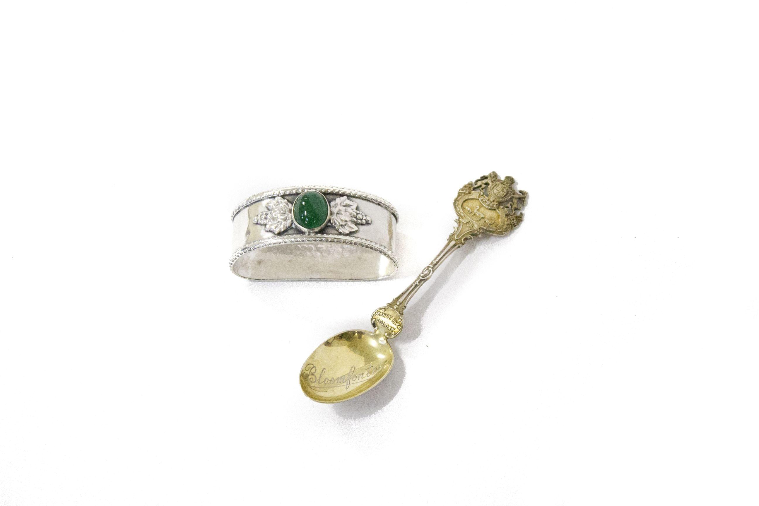 Londres 1902-1903, vermeil et lien de serviette à cabochon vert, Londres 1912-1913, argent, 60 g