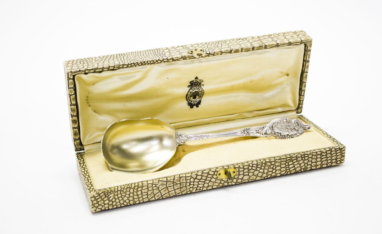 3247. Cuillère de service à crème à motif de coquille et vase fleuri