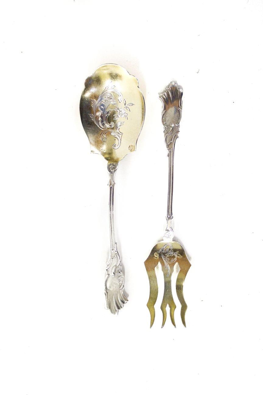 3382. Cuillère et fourchette à bonbons à décor de rinceaux et rocailles
