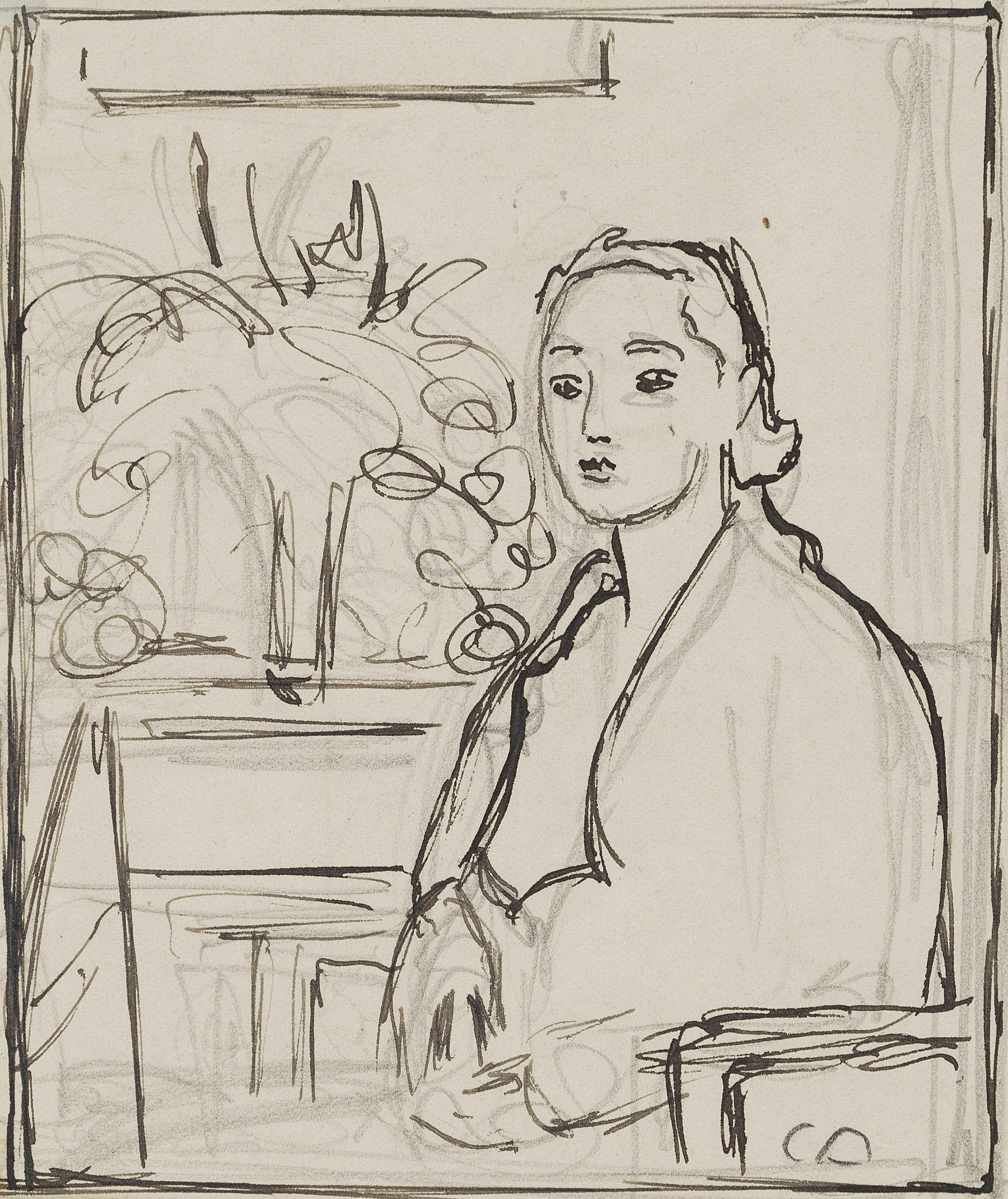 Femme dans un intérieur, encre et mine de plomb sur papier, 13x11 cm