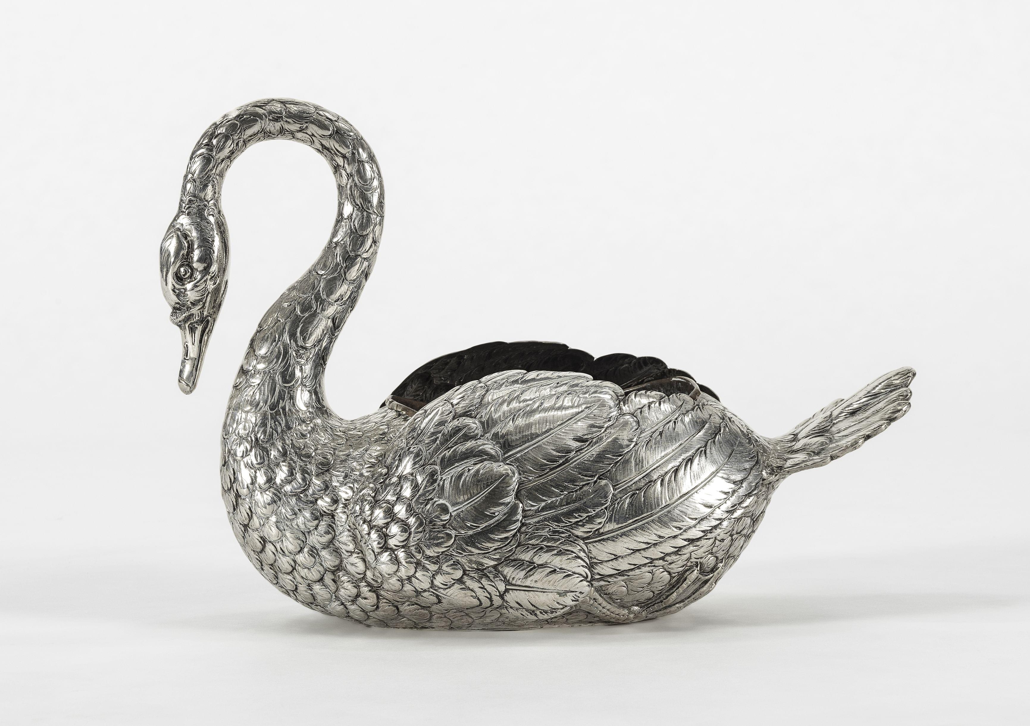 138. Théière ovale d'époque Empire à prise cygne en rappel pour le be...