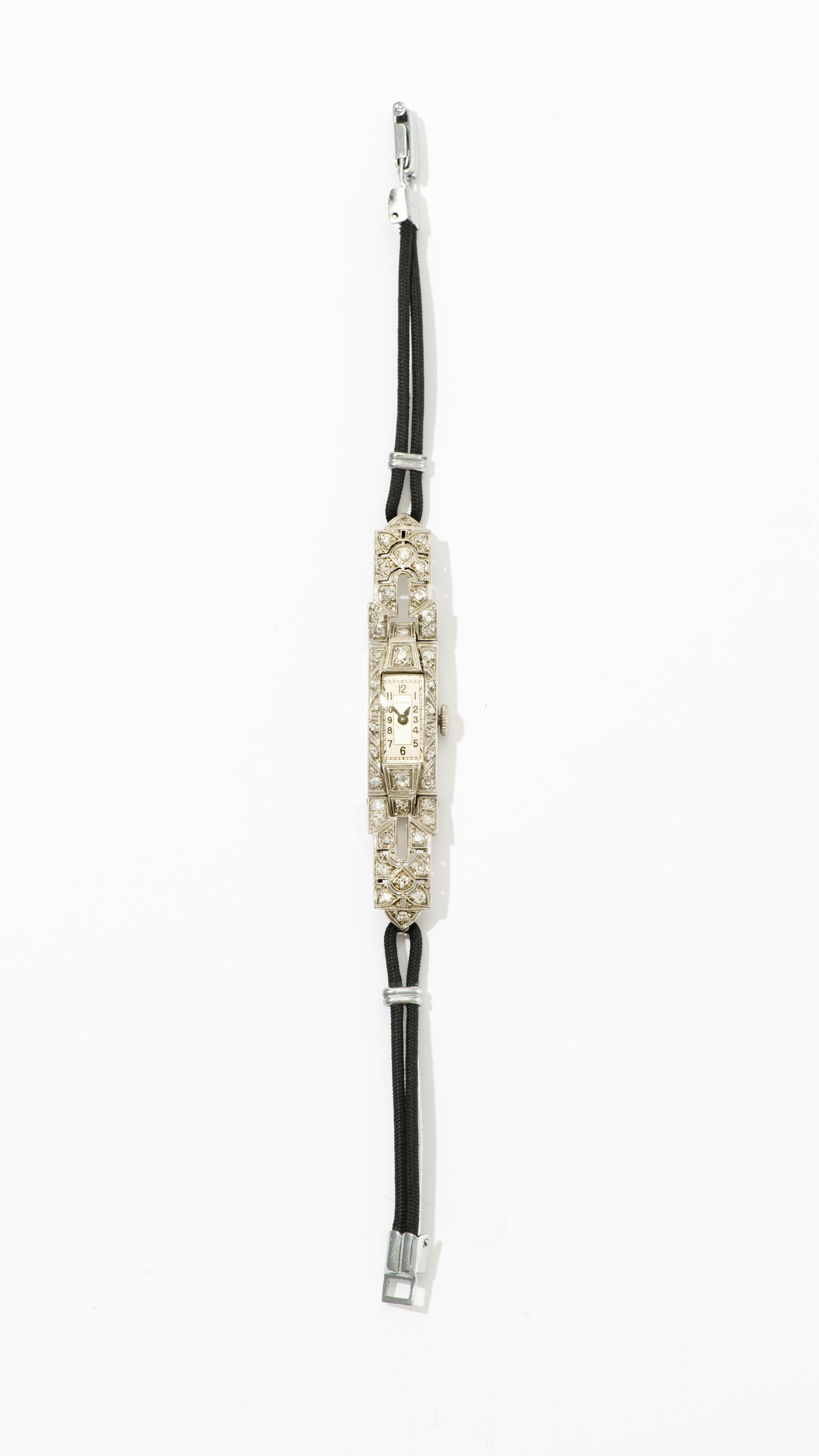 58. Cyma, montre de dame rectangulaire mécanique sertie de diamants