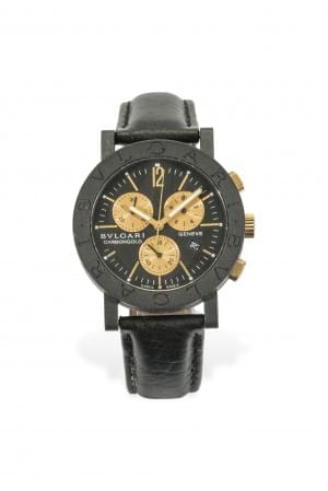 36. Bulgari, Carbongold, montre chronographe ronde à quartz