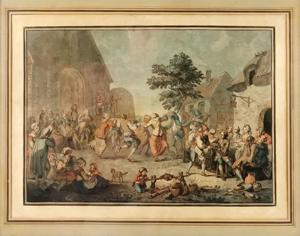 Les foins, paire de gravures, 30x42 cm. Provenance Habsbourg: succession de l'archiduc Albert II d'Autrich-Teschen