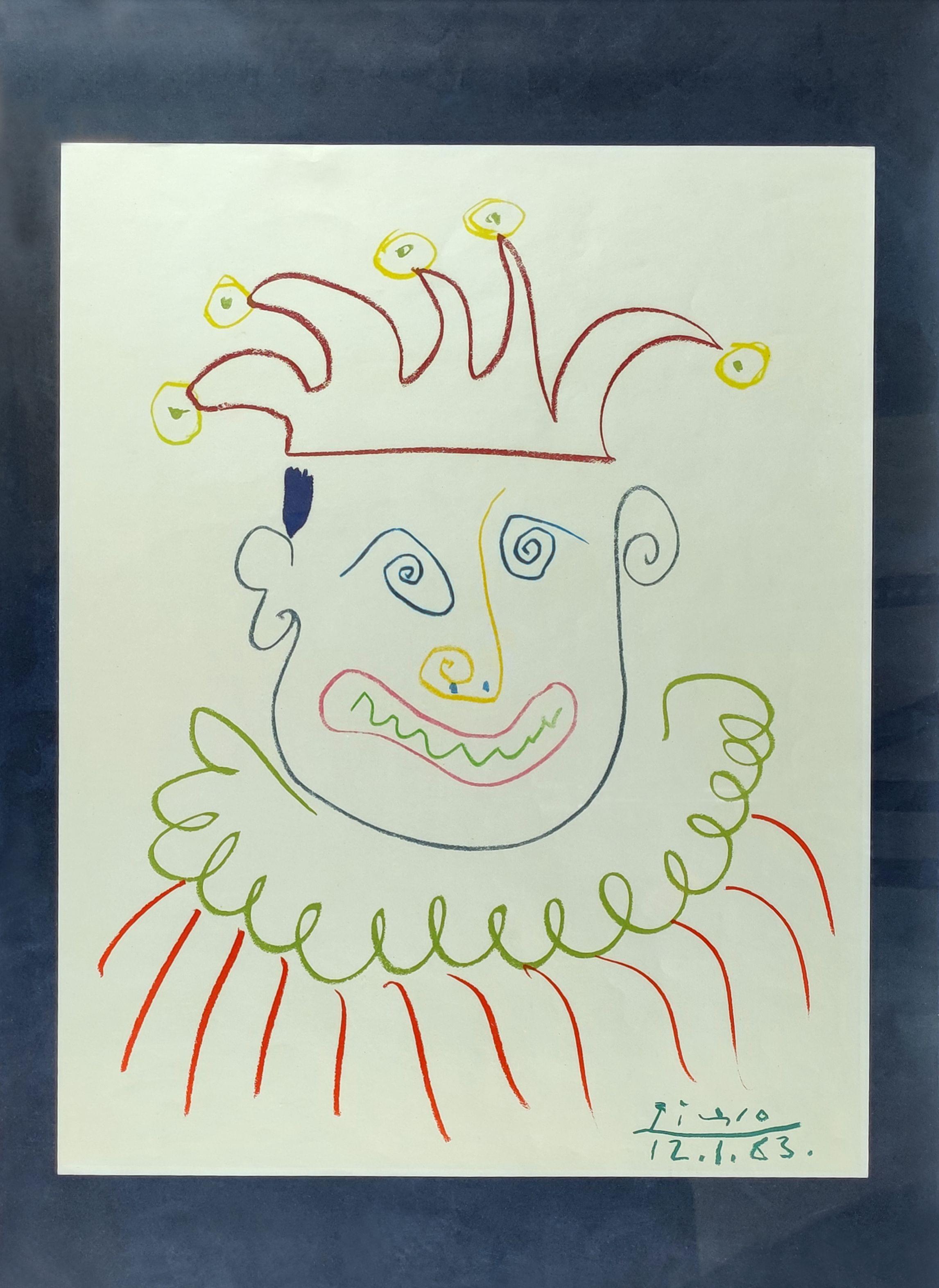Le fou du roi, affiche, épreuve sans la lettre pour une affiche lithographique en couleur réalisé par Mourlot pour une exposition à la librairie Fischbacher en 1966, signé et daté dans la planche, 55x42,5 cm