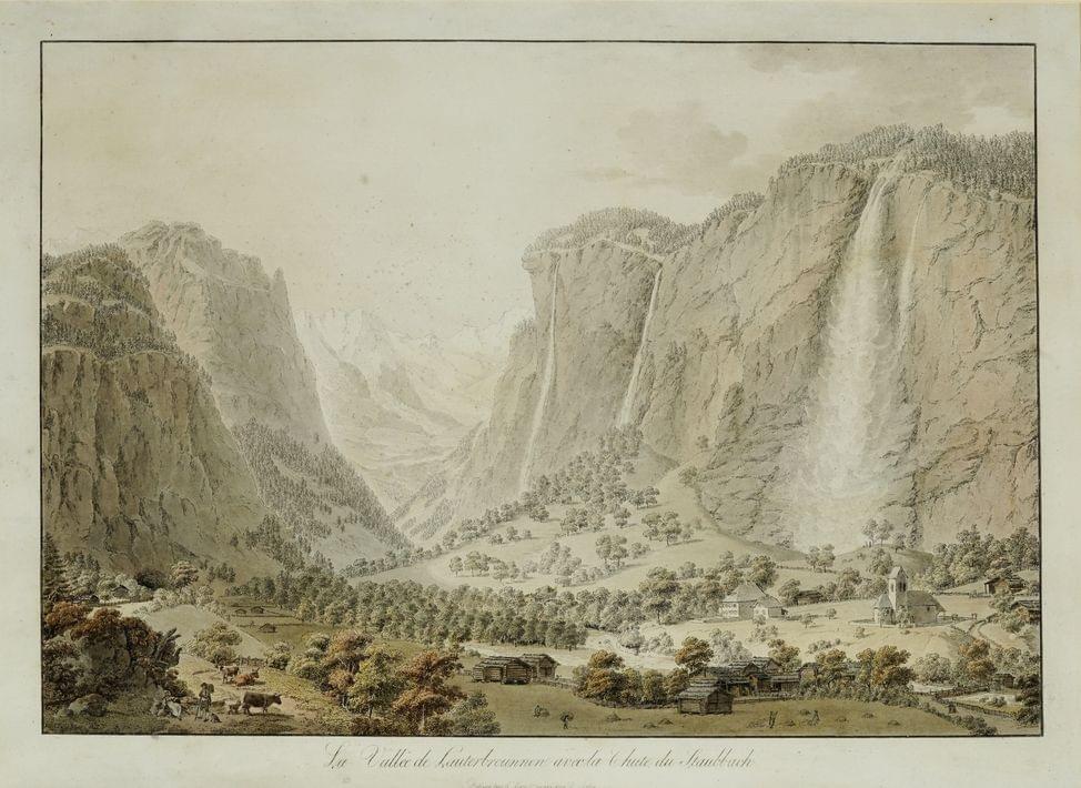 Vue des environs de Berne, gravure en couleurs, 42x57 cm