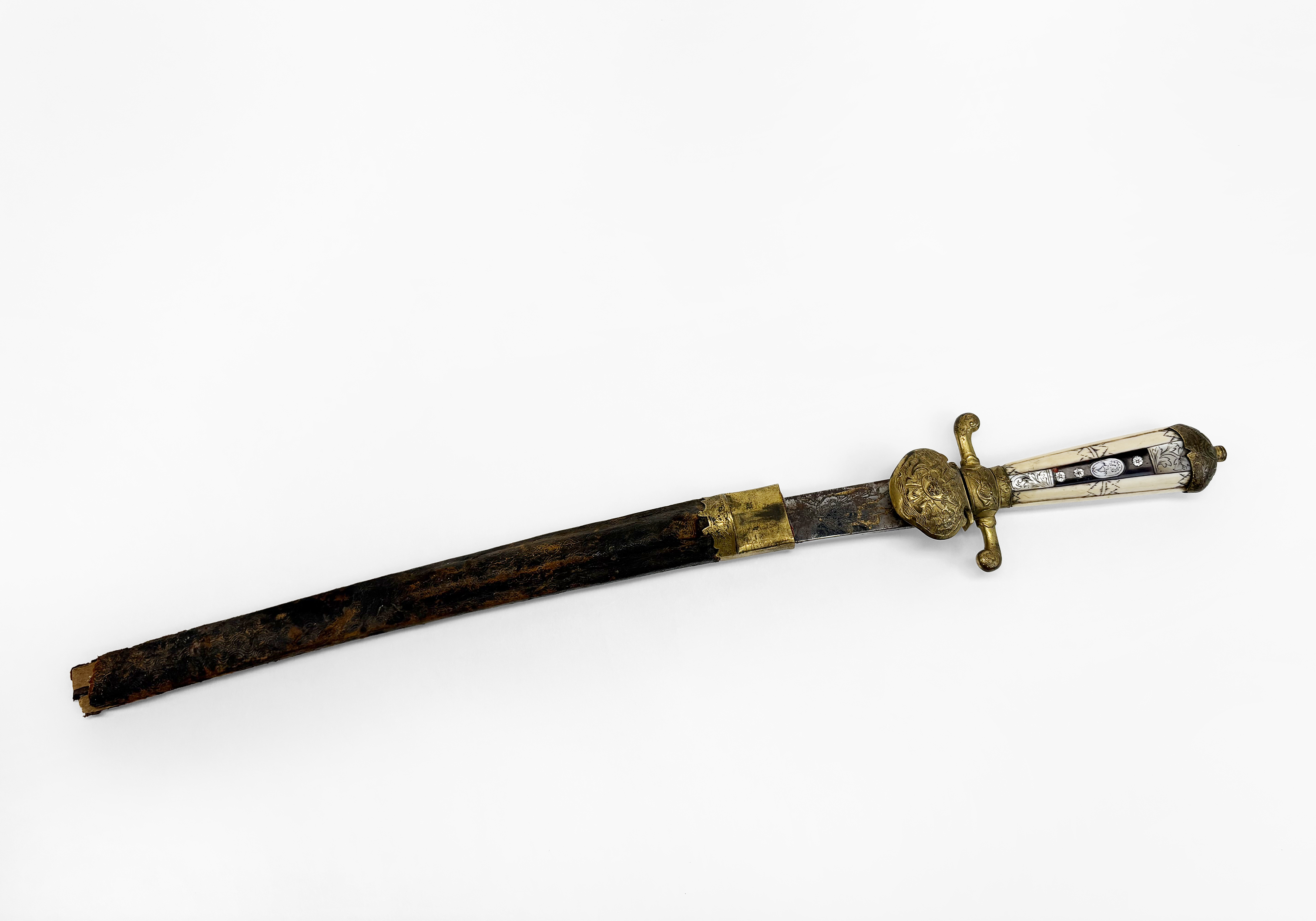 Ivoire, bois de loupe et métal doré, D de 7 à 9 cm