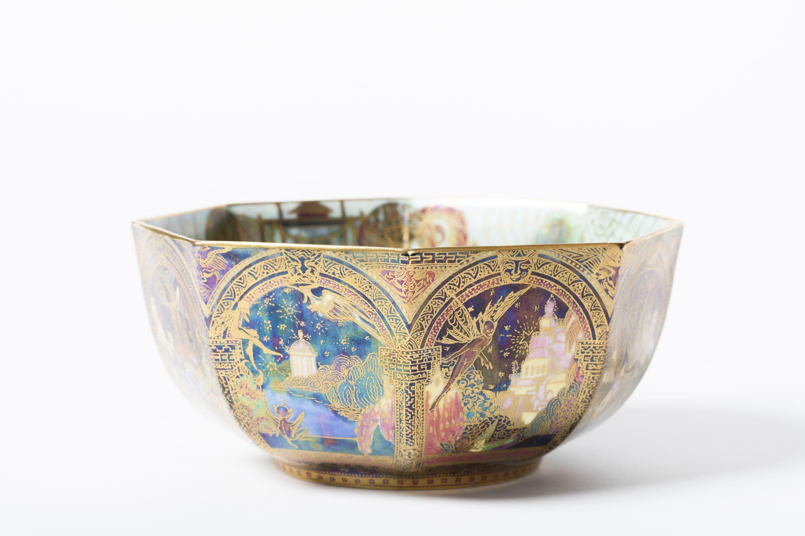 Bol octogonal Art Nouveau à motif de fées, Wedgwood, L 18,5 cm Daisy Makeig-Jones for Wedgwood A Fairyland Lustre Octagonal Bowl, circa 1920