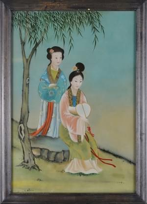 578. Paire d'assiettes semi-creuses à décor au centre de deux dames d...