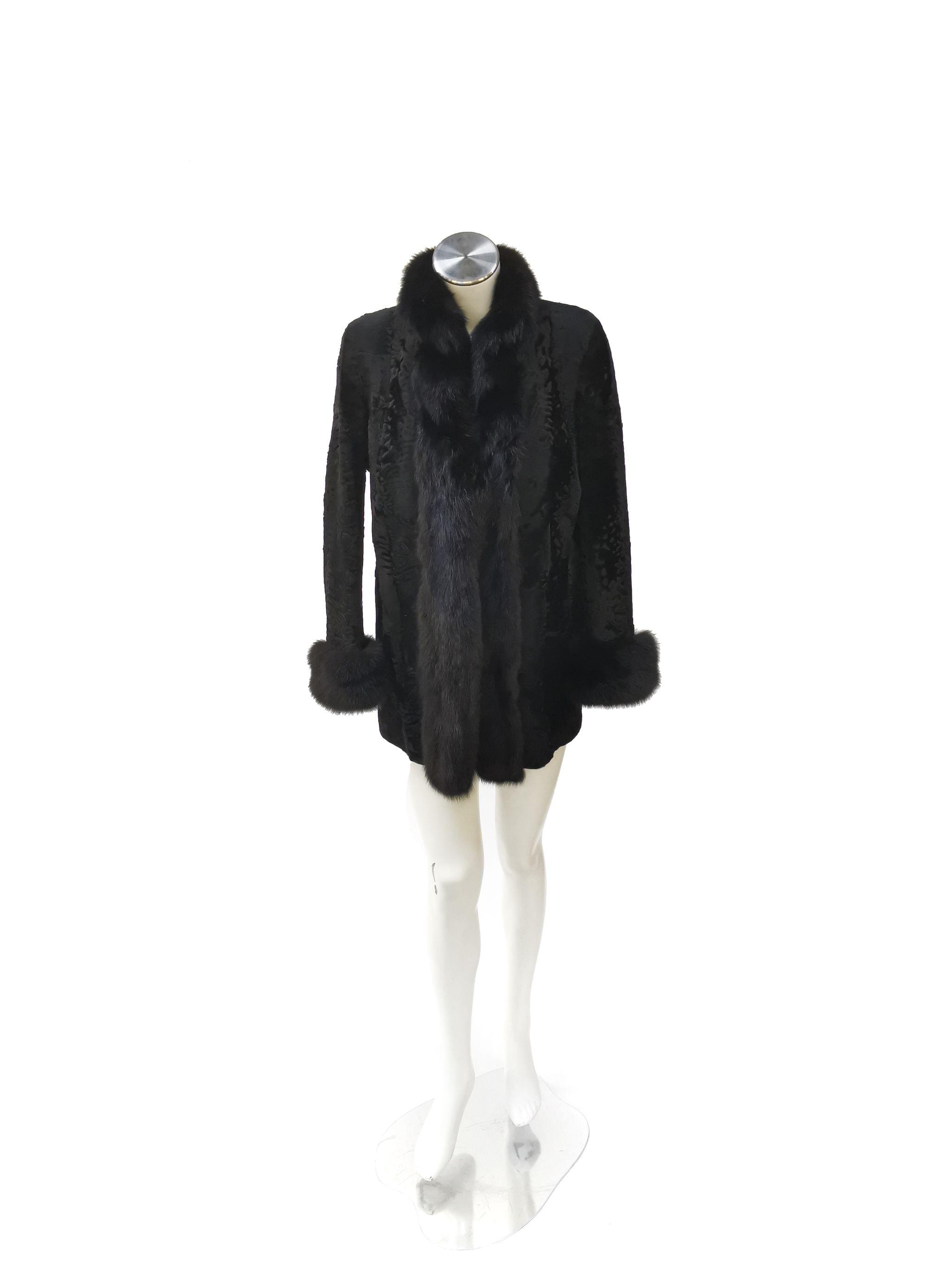 Astrakan noir orné de boutons argentés, intérieur en tissu noir,...