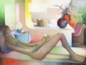 Nu féminin à la lecture, huile sur toile, signée, 76x103 cm