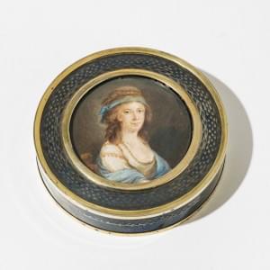 93. Boîte ronde d'époque néoclassique à décor finement niellé d'un t...
