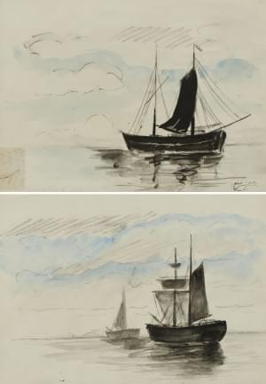 Deux études de bateaux, aquarelles, 24x32 cm