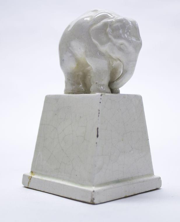 Eléphant sur piédestal, faïence craquelée, circa 1920, H 10,5 cm