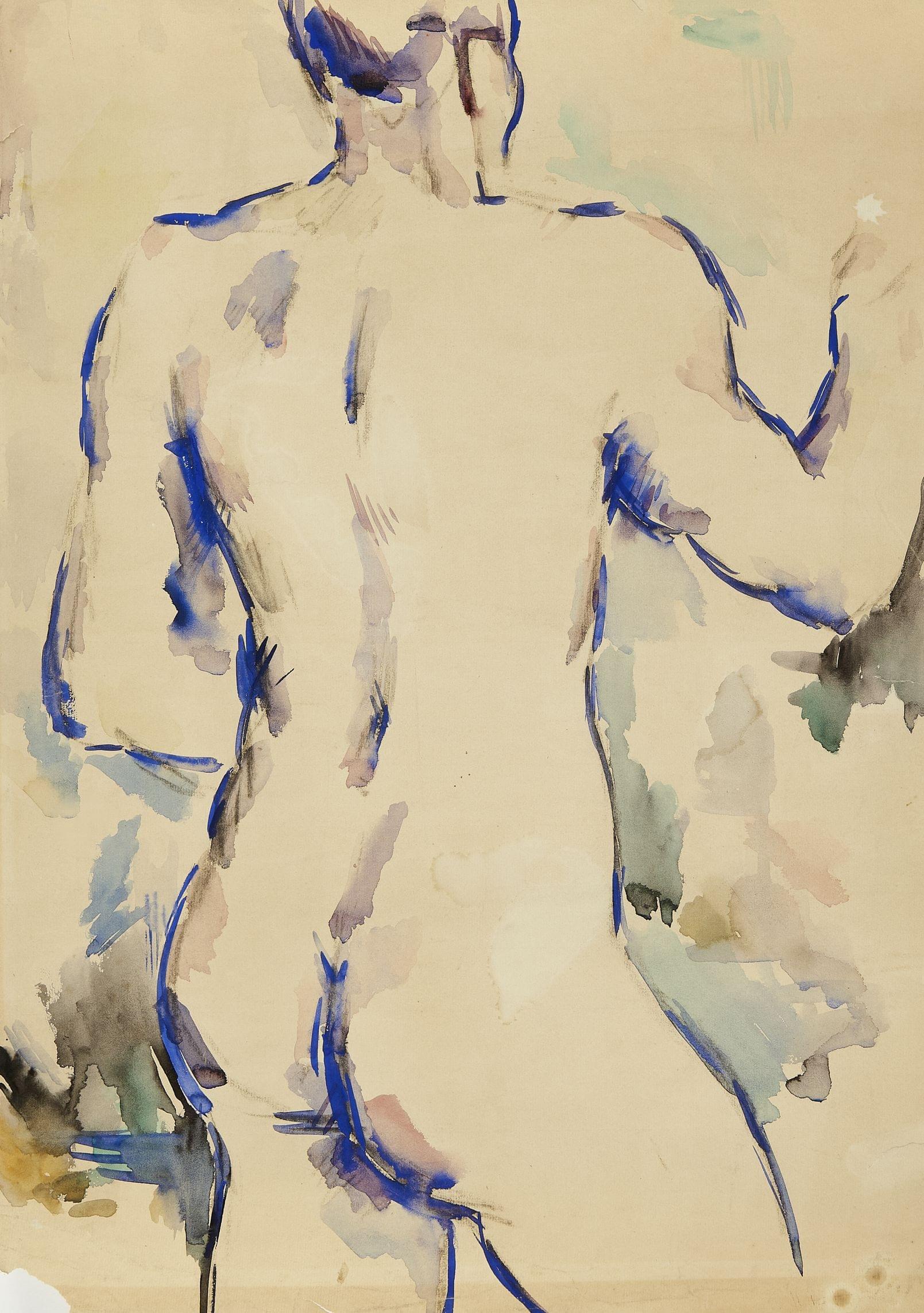 Nu de dos, aquarelle sur papier, 59x44 cm
