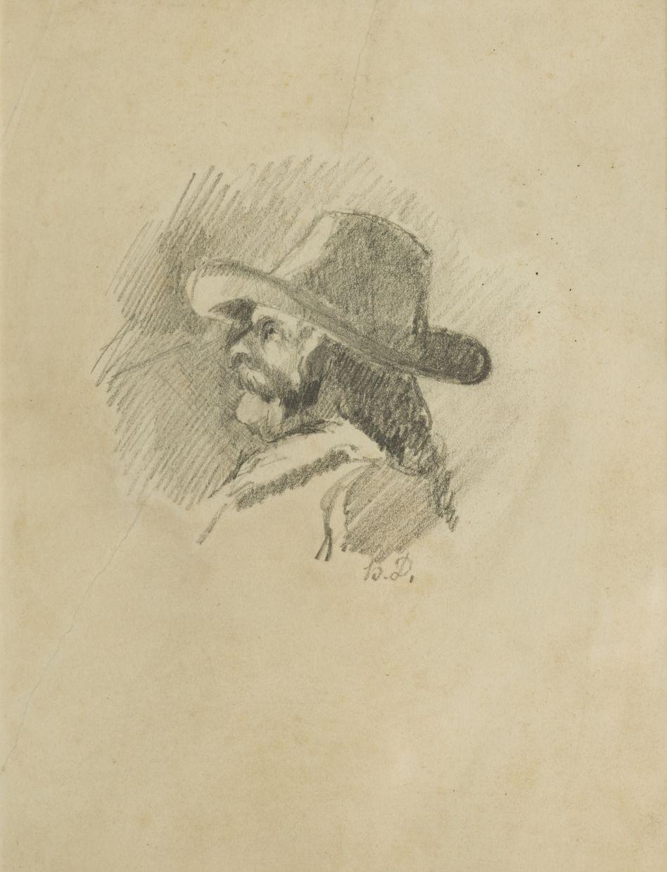 Portrait d'homme, mine de plomb sur papier, monogrammée, 21,5x11,5 cm