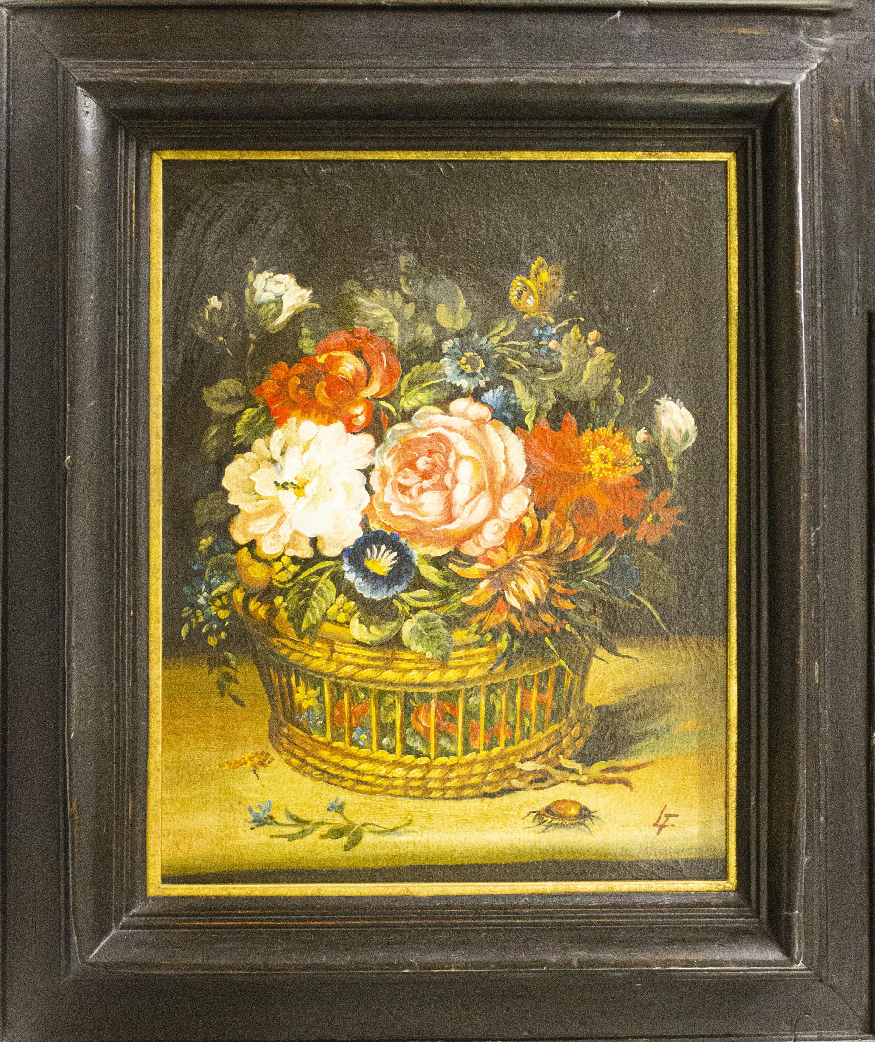 Corbeille de fleurs, huile sur toile, 43x33 cm