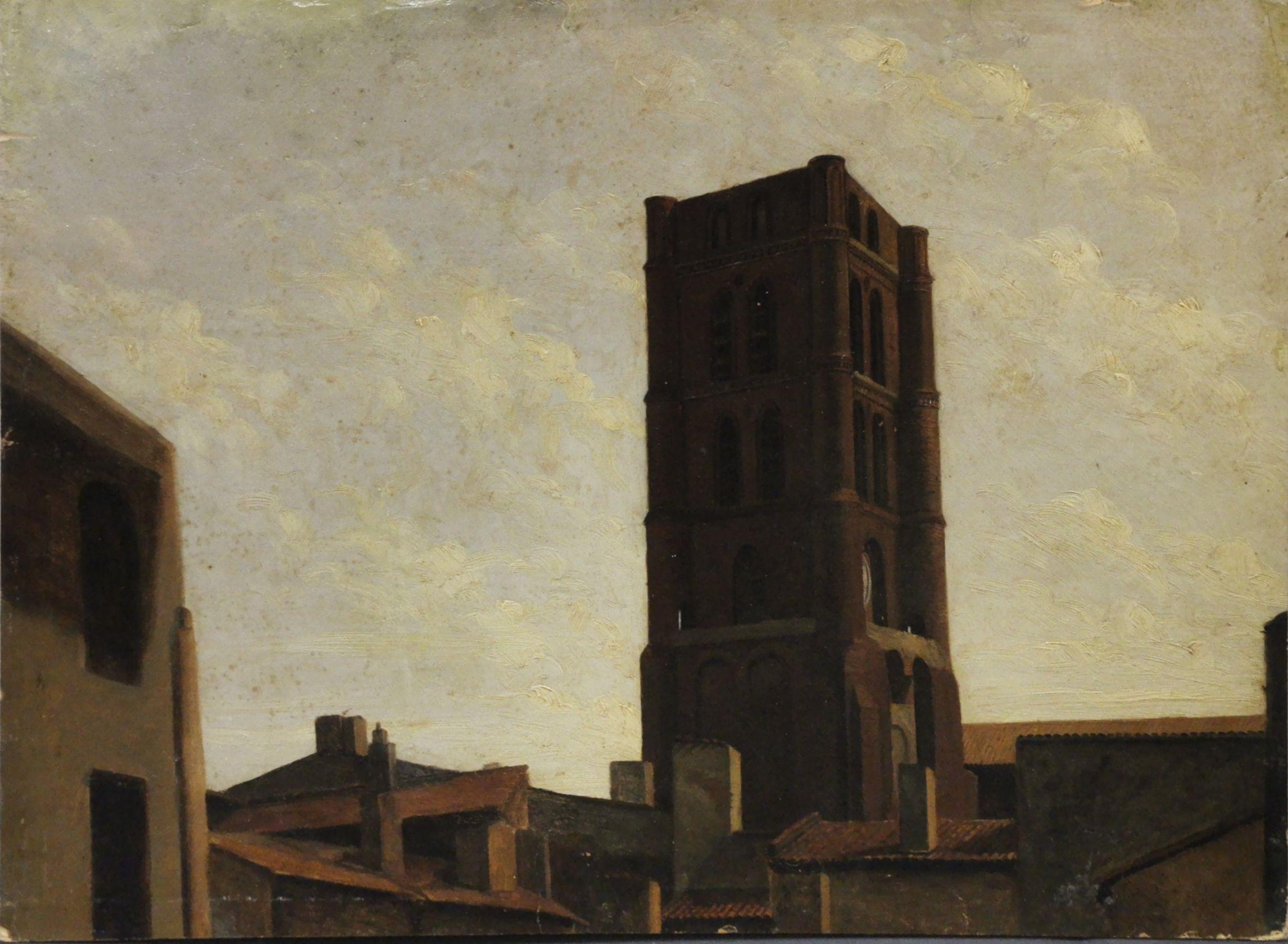 Vue des toits, huile sur carton, non signée, 35x48 cm