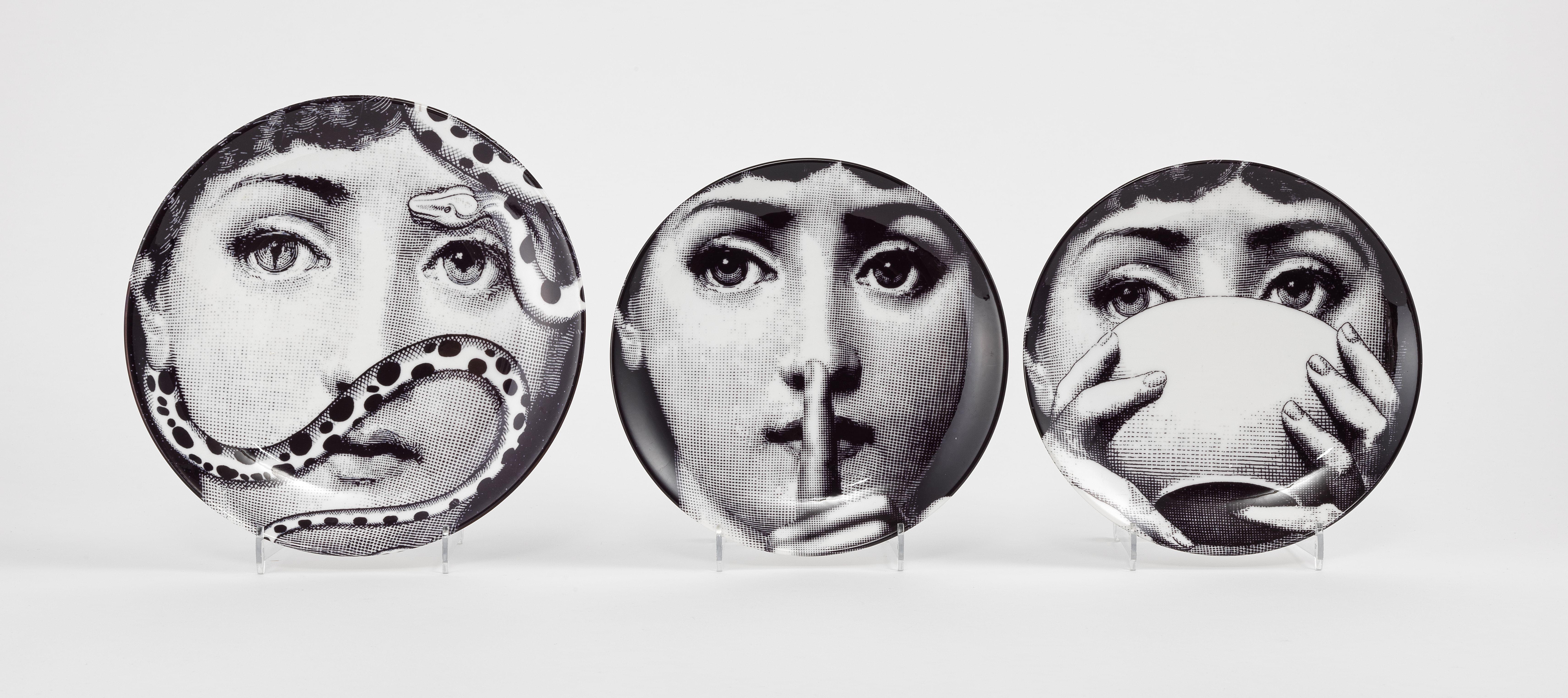 4237. Dans le style de Fornasetti, suite de 3 assiettes