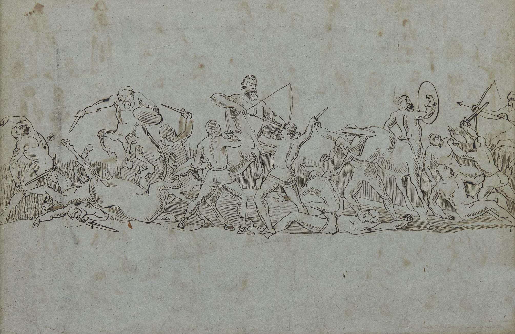 La bataille des centaures et des Lapithes, encre sur papier, 30x45 cm