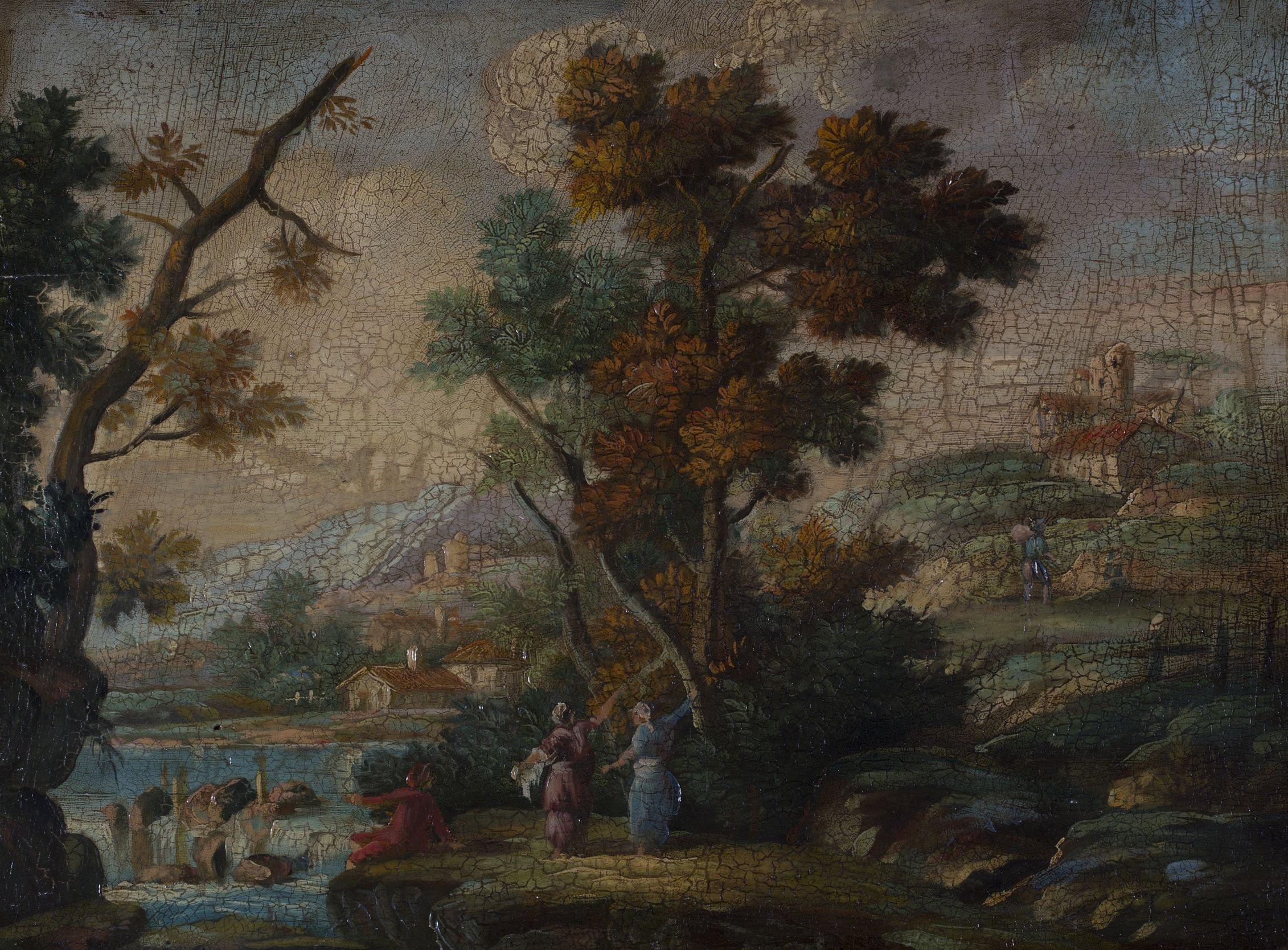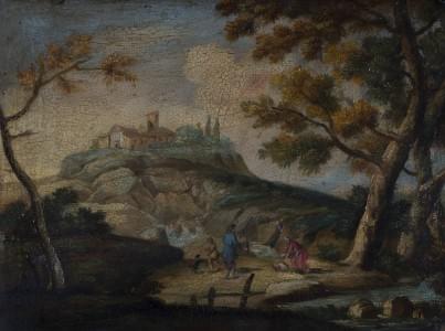 Paysages animés, paire d'huiles sur panneaux, 32x44 cm