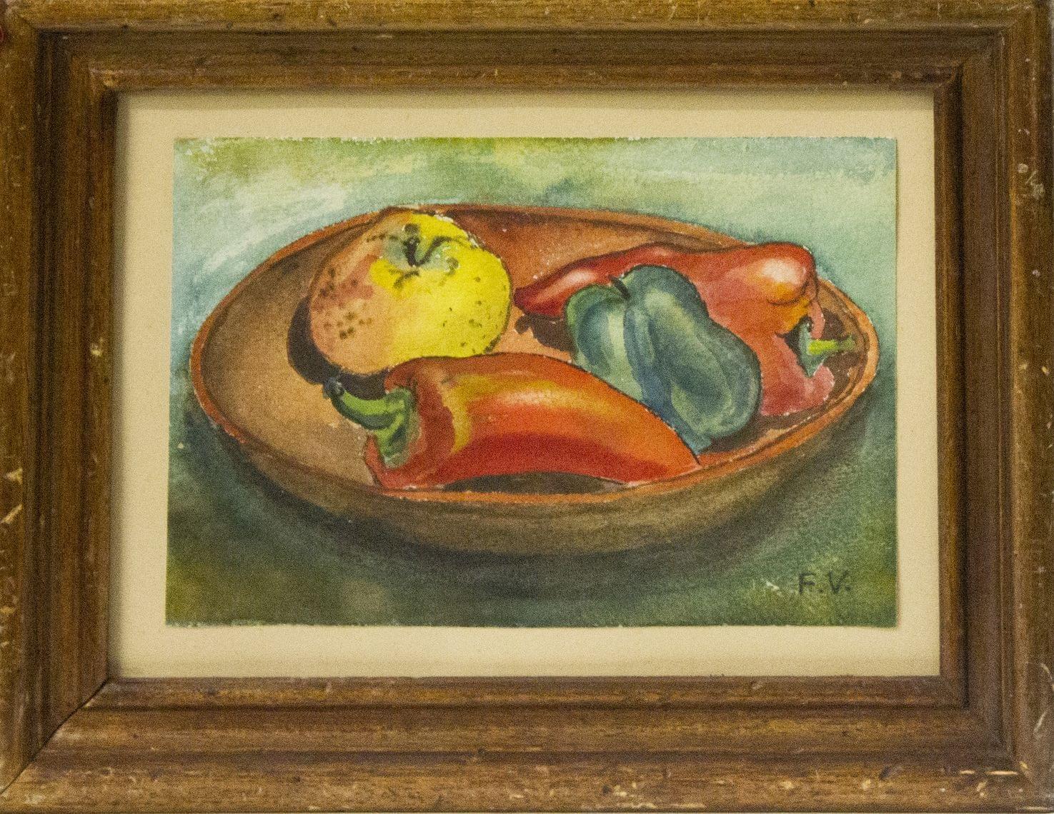 Nature morte aux fruits, aquarelle sur papier, monogrammée F.V, 14x20 cm