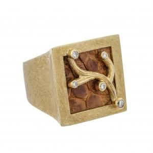 938. Bague carrée satinée à motif d'arbre serti de diamants