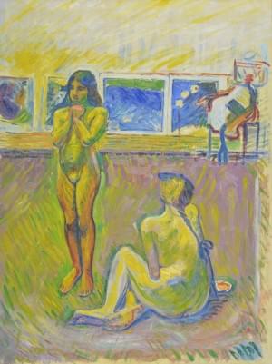Deux fillettes nues, huile sur toile, 62x46 cm. D'après le table...