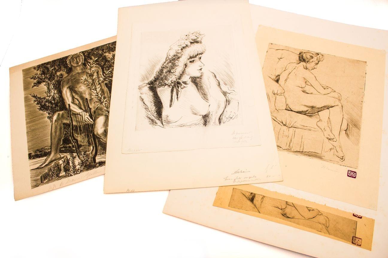 Mayens et chapelle sous la neige, paire d'estampes couleur signé...
