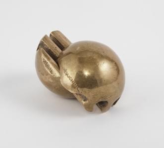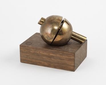 Sphère percée, bronze, numéroté 65/100, L 13 cm