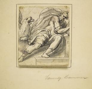 On joint un vase de fleurs, Saint-Marc l'évangéliste et une scène mythologique, (4 dessins au total)