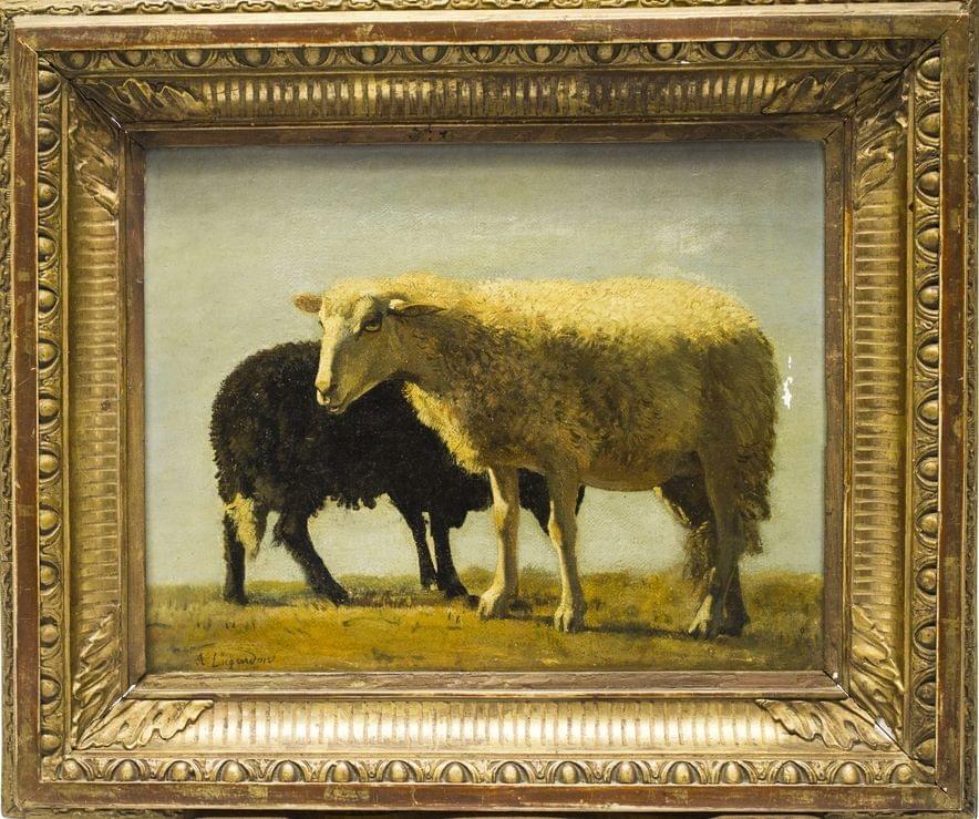 Homme en effort de traction, huile sur toile, 36x27,5 cm. Cachet...
