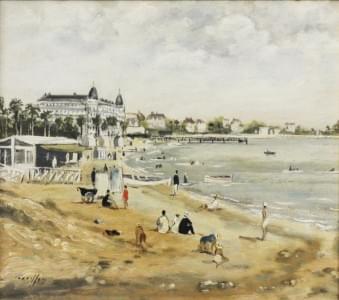 Ensemble de 2 scènes de plage, huiles sur panneaux, signées Devillers, 18x22 et 20x24 cm. Provenance: collection Pernet-Villaverde