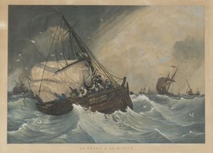 La pêche au hareng et La pêche à la Morue, paire de grandes lith...