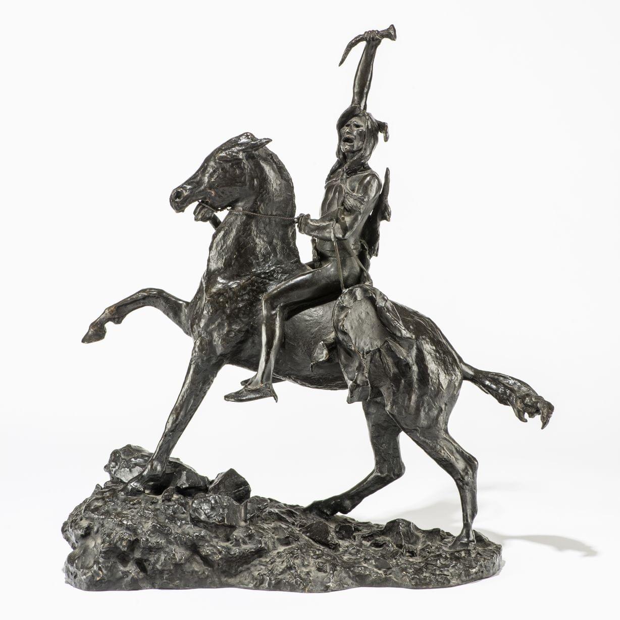 Indien vainqueur, bronze à patine foncée, signé et marqué copyright, H 60 cm