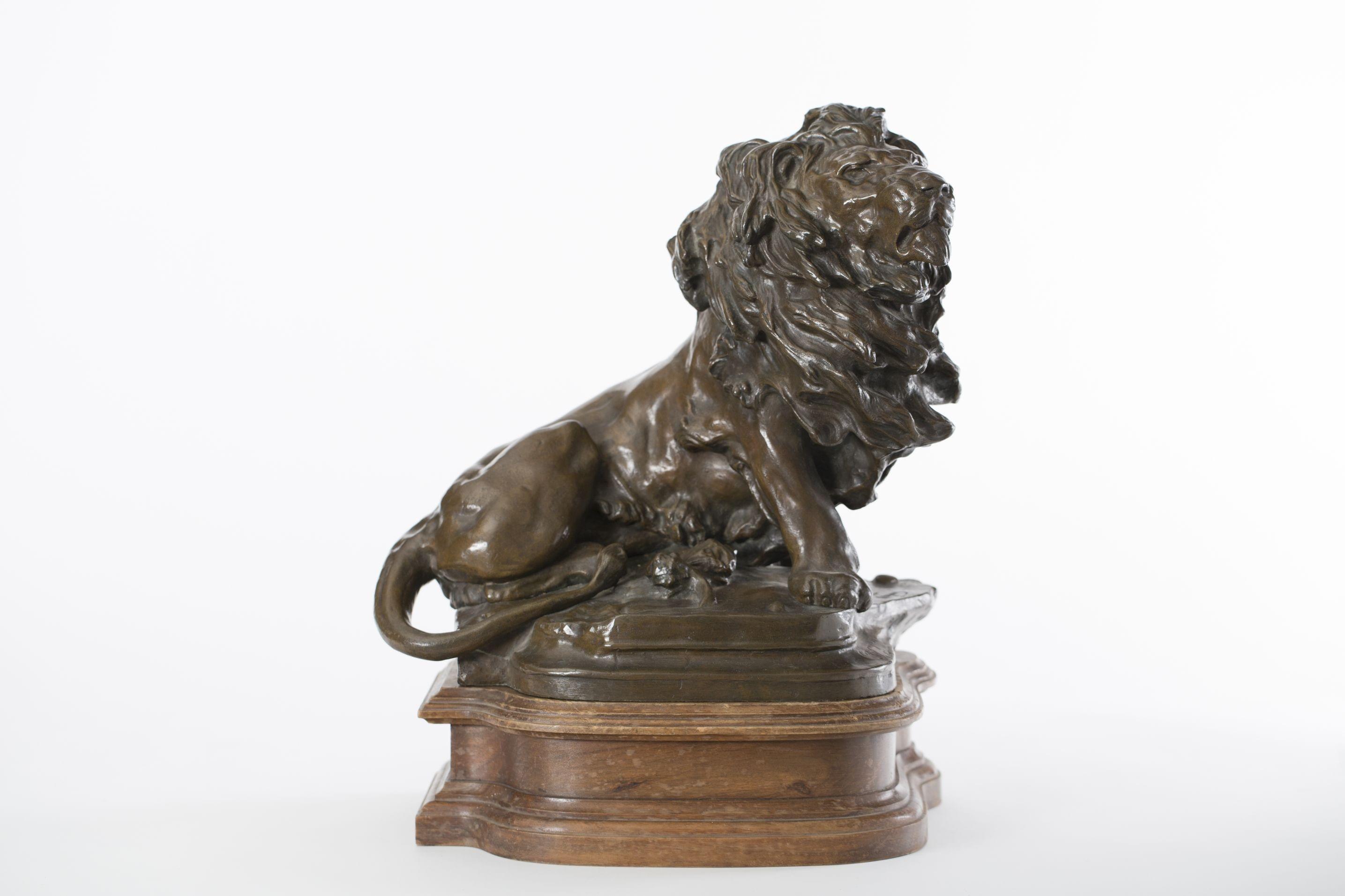 Lion assis, bronze à patine dorée, H 35,5 cm