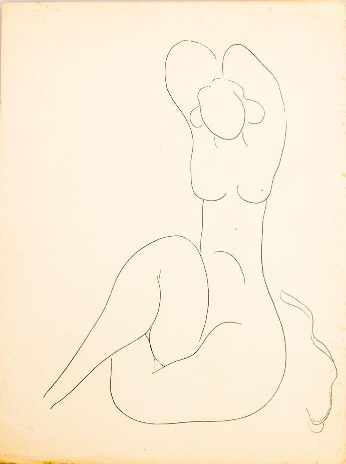 Nu assis à l'étole bleue, pastel sur papier, cachet de l'atelier...