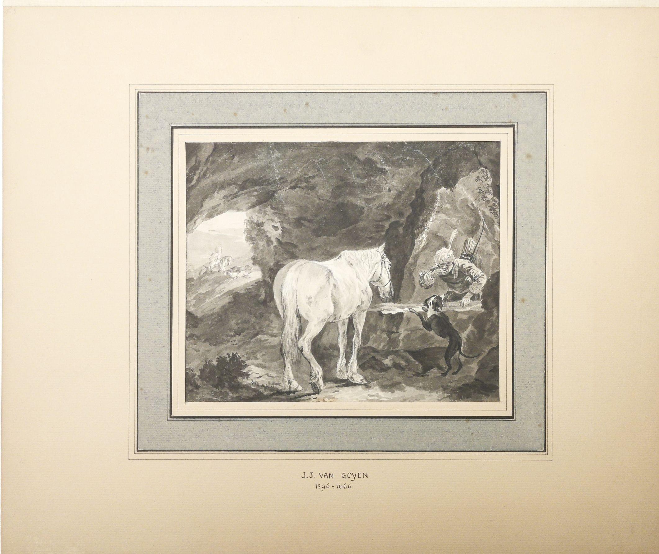 Chasseur et son cheval, lavis sur papier, 19x15 cm