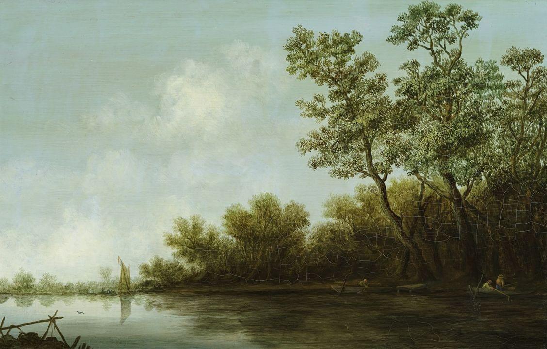 Pêcheurs près de la rive, huile sur panneau, 31x48 cm