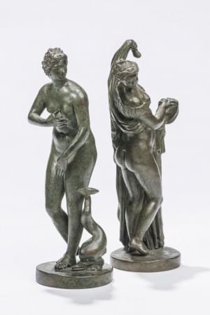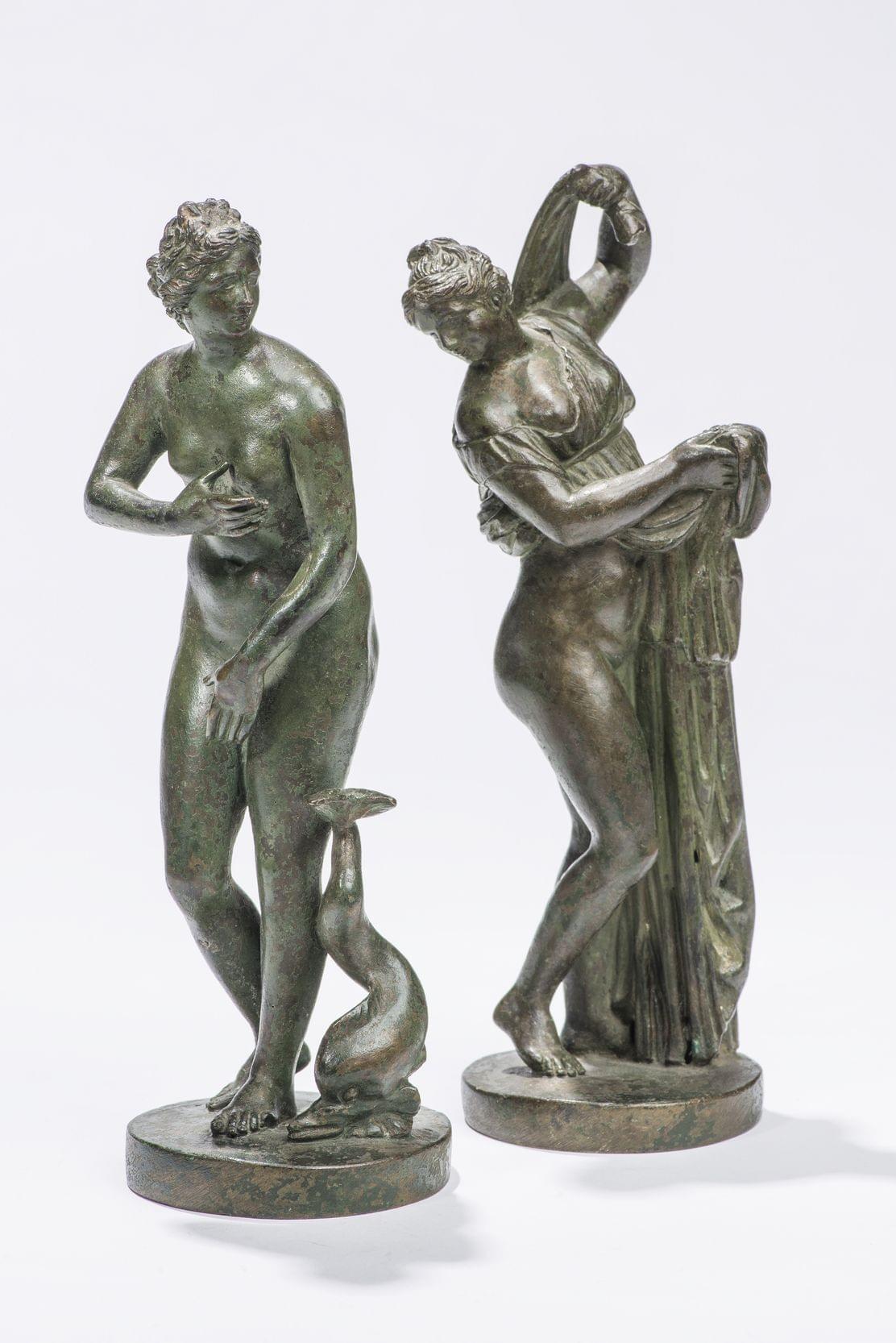 Aphrodite du Capitole et Aphrodite drapée, deux sujets en bronze à patine verte, Italie, fin XIXe s, H 23 cm
