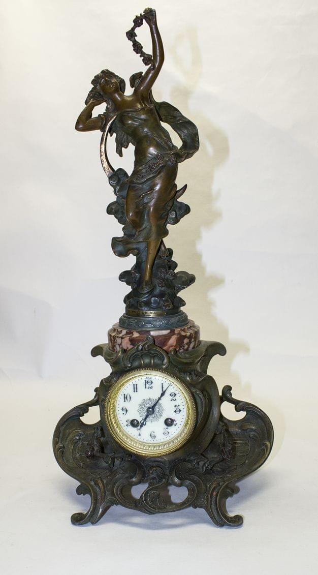 Nuit de mai, sculpture en régule montée en pendule, H 54 cm