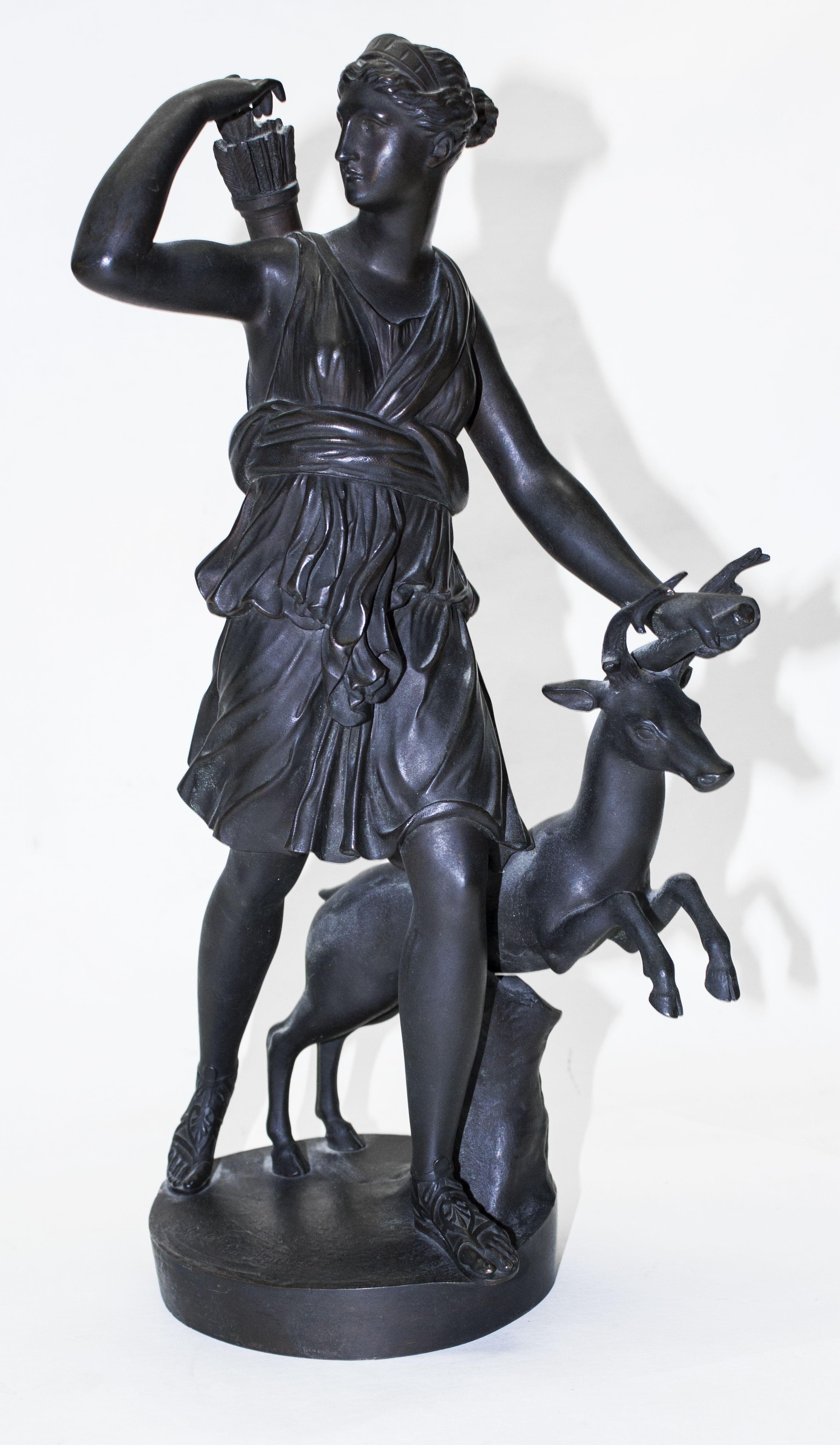 Athlète au strigile et Diane Chasseresse, deux bronze à patine verte, Italie, XIXe s, H 35 cm