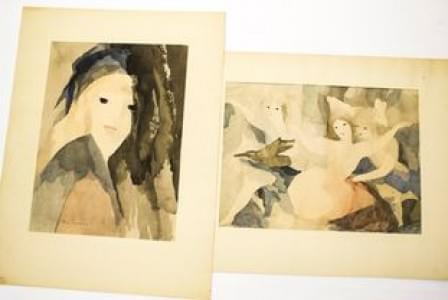 Portrait de jeune fille et trois danseuses, deux gravures en couleurs, signées