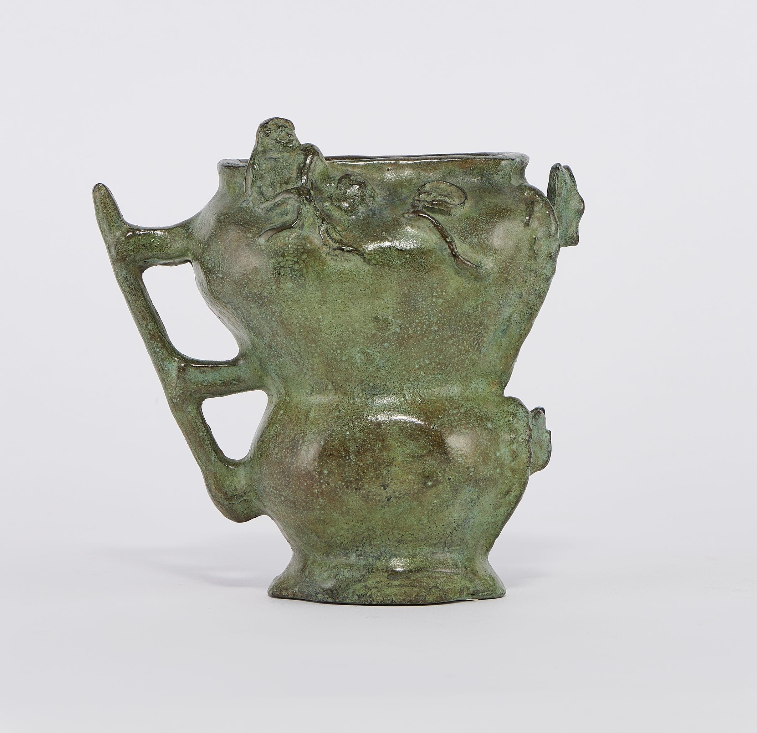 Pot à décor d'Eve et le serpent, bronze à patine verte d’après le grès original, numéroté 8/8, cire perdue Valsuani, H 19 cm
