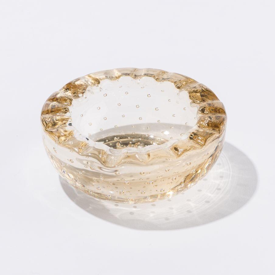 Verre multicouche dégagé à l'acide à décor de bignones oranges s...