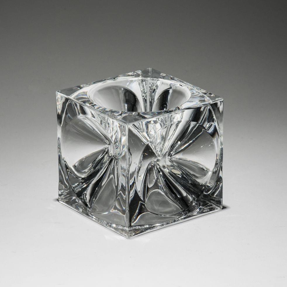 Cube à côtés concaves, cristal, signé, L 10,5 cm