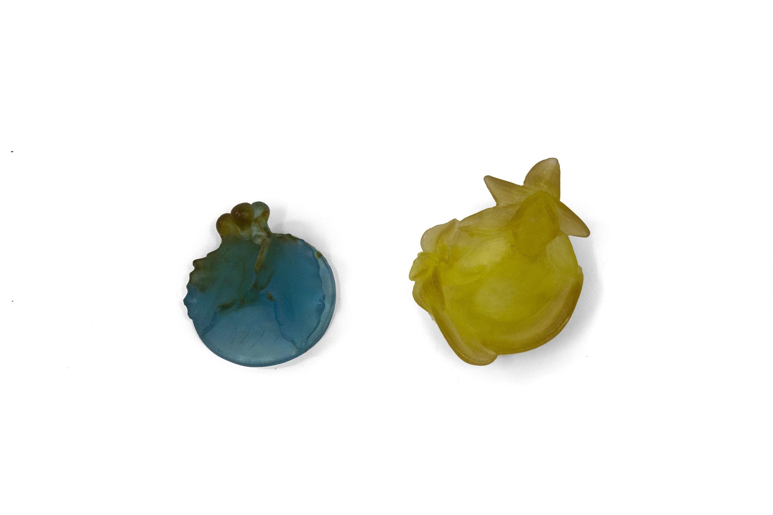 Verre ambre et vert, numéroté 121/1000, 25x24x9 cm