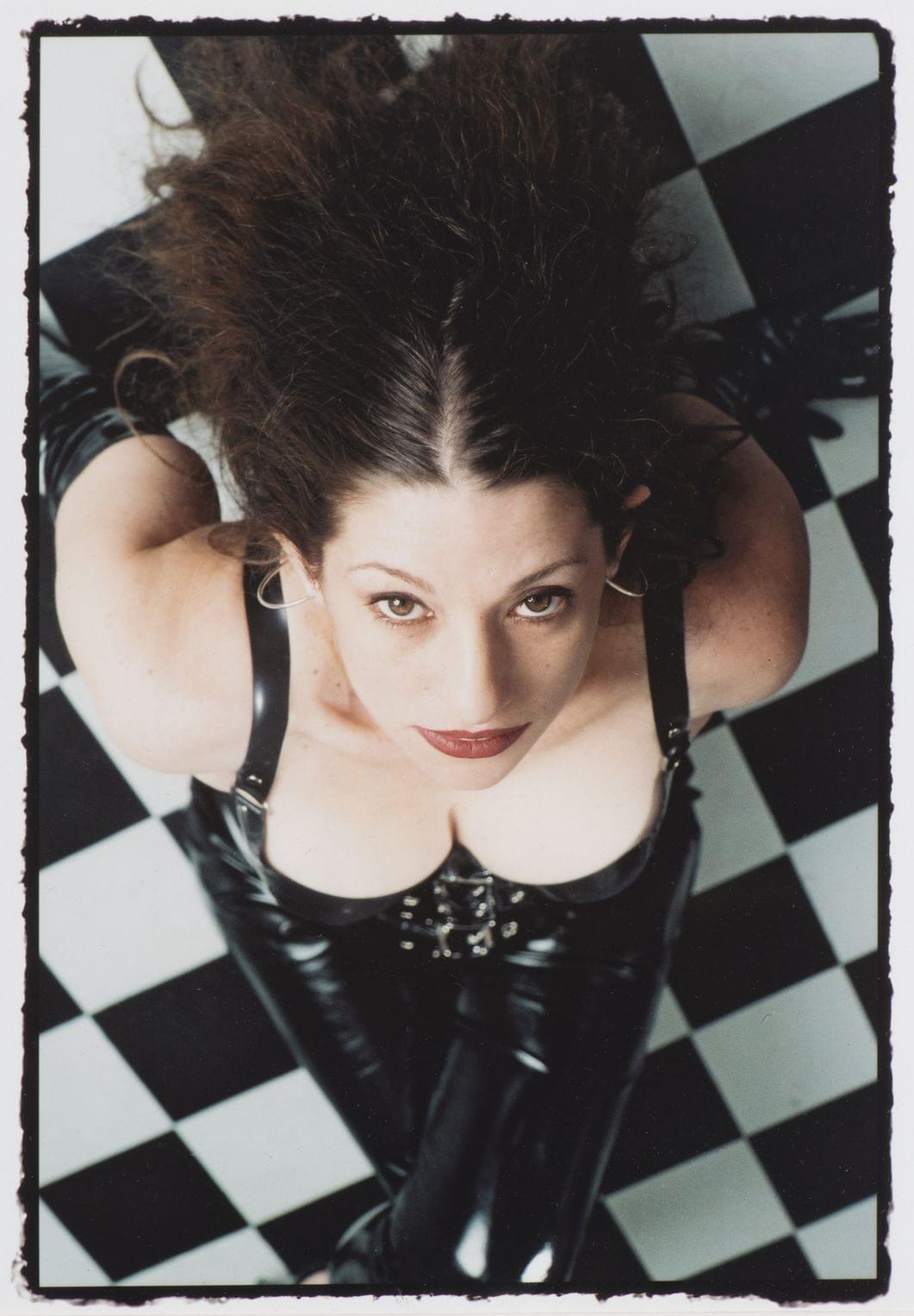Jeune femme aux collants résilles, tirage argentique en noir et...